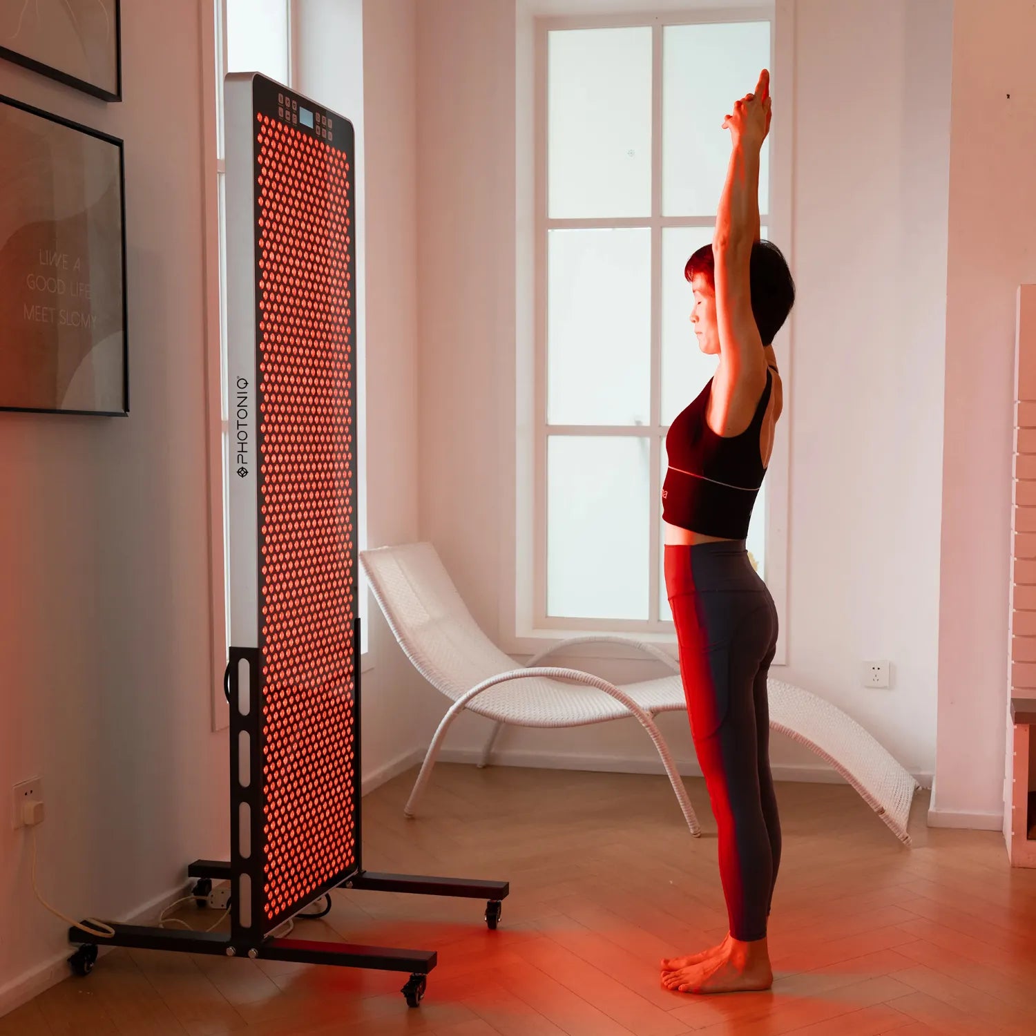 The PHOTONIQ Red Light Panel is designed to support skin health, muscle recovery, relaxation, and overall well-being. It can help stimulate collagen production, reduce inflammation, accelerate muscle recovery, promote better sleep, and support joint health—all from the comfort of your home.